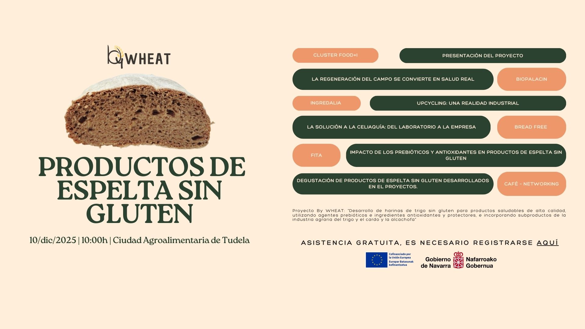 El proyecto by-WHEAT está cofinanciado por la Unión Europea (FEADER) y el Gobierno de Navarra, en el marco del Plan Estratégico de la PAC 2023–2027). Más información sobre el proyecto: https://www.clusterfoodmasi.es/by-wheat/